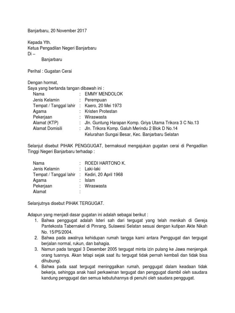 Gugatan cerai dilakukan dengan mengajukan surat gugatan secara tertulis pada pengadilan agama tempat mereka menikah dahulu. Jelajahi koleksi gambar foto dan wallpaper kami yang sangat luar biasa. Kumpulan Contoh Surat Gugatan Cerai Istri Kepada Suami Non Muslim dan Contoh Surat Gugatan Cerai Istri Kepada Suami Non Muslim yang bisa anda download secara gratis.